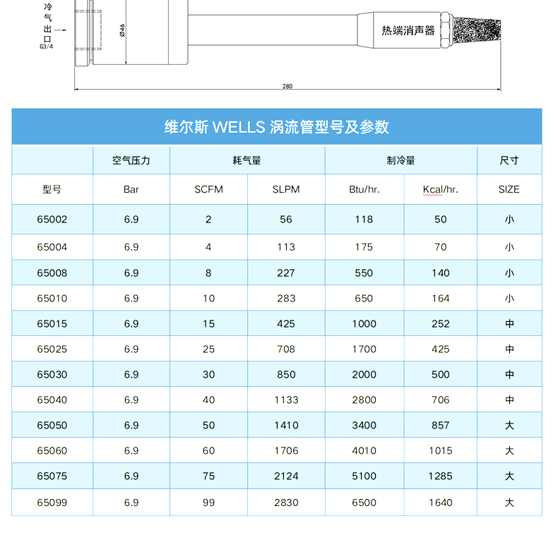 注:1.以上均在气压80-100PSIG(6-7公斤)下得出的参数,仅供参考